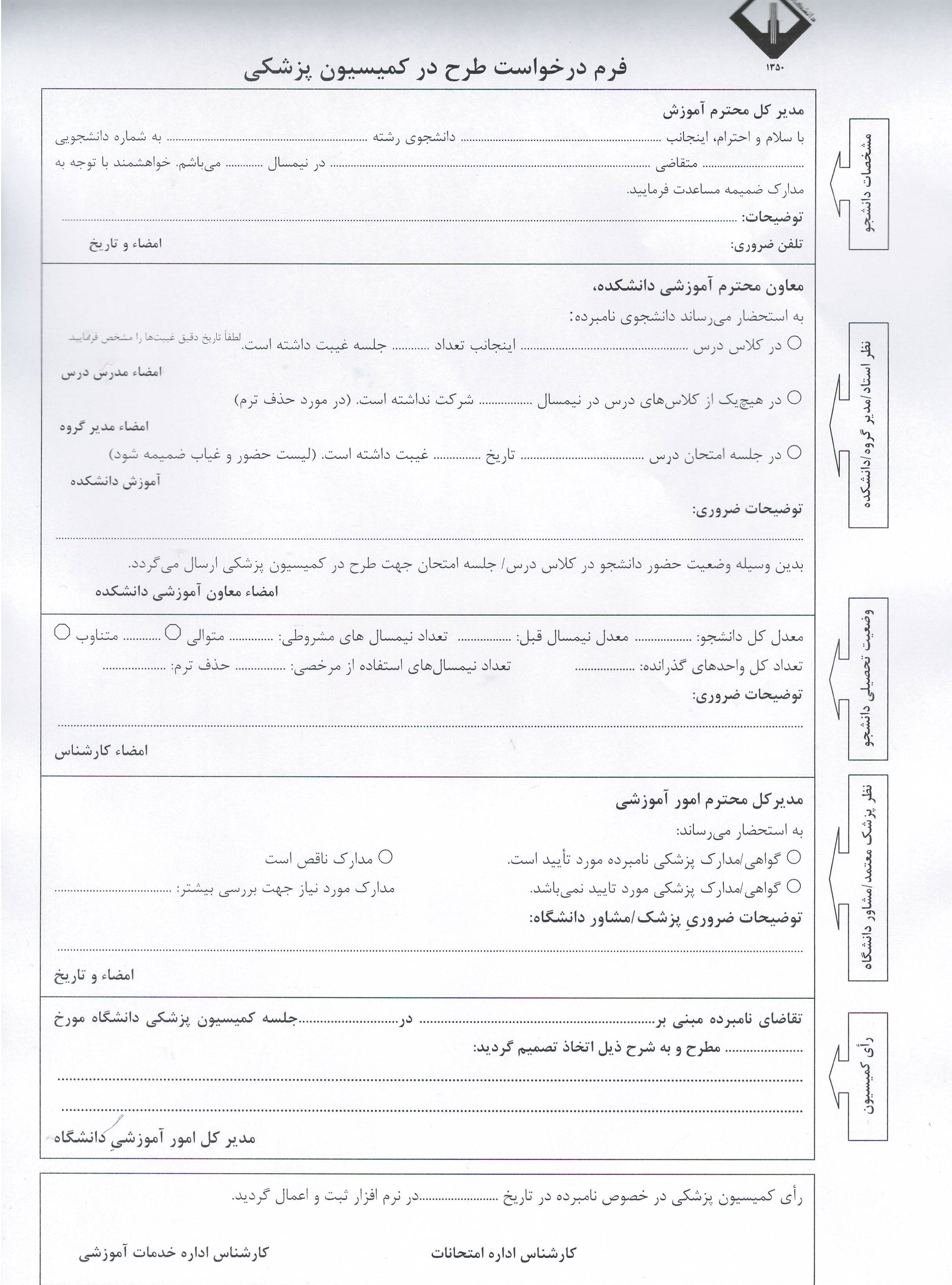 فرم‌های مورد نیاز حین تحصیل