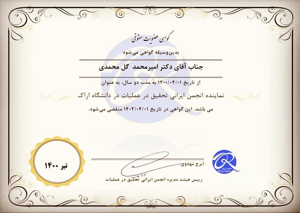 انتصاب جناب دکتر گل محمدی بعنوان نماینده انجمن تحقیق در عملیات ایران در دانشگاه اراک